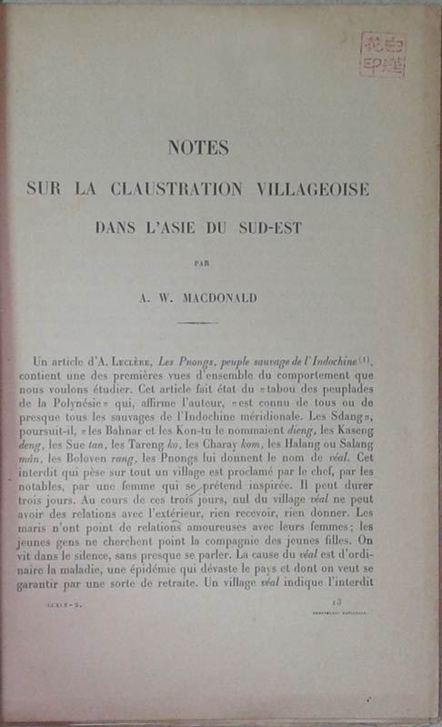 Notes sur La Claustration Villageoise Dans L'asie Du Sud-Est