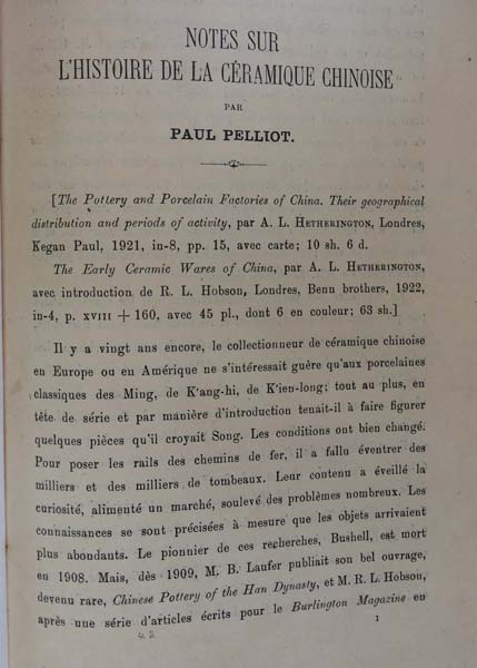 Notes sur L'Histoire de la Ceramique Chinoise