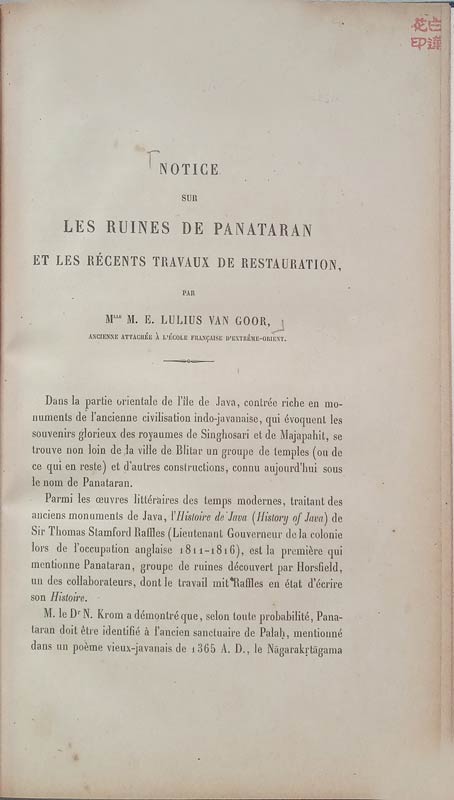 Notice sur les Ruines de Panataran et les Recents Travaux de Restauration