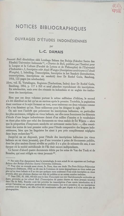 Notices Bibliographiques:ouvrages D'Etudes Indonesiennes