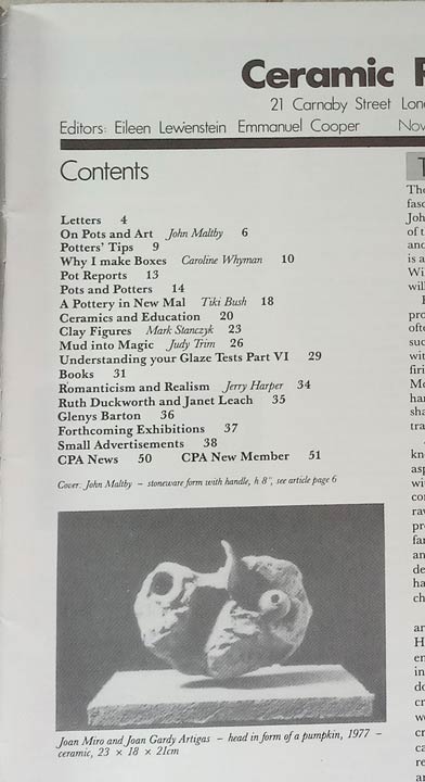12 Article of Ceramic Review. No 102. Nov-Dec 1986.