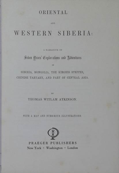 A Narrative of Seven Years' Explorations and Adventures in Siberia, Mongolia, the Kirghis Ateppes, Chinese Tartary and Part of Asia