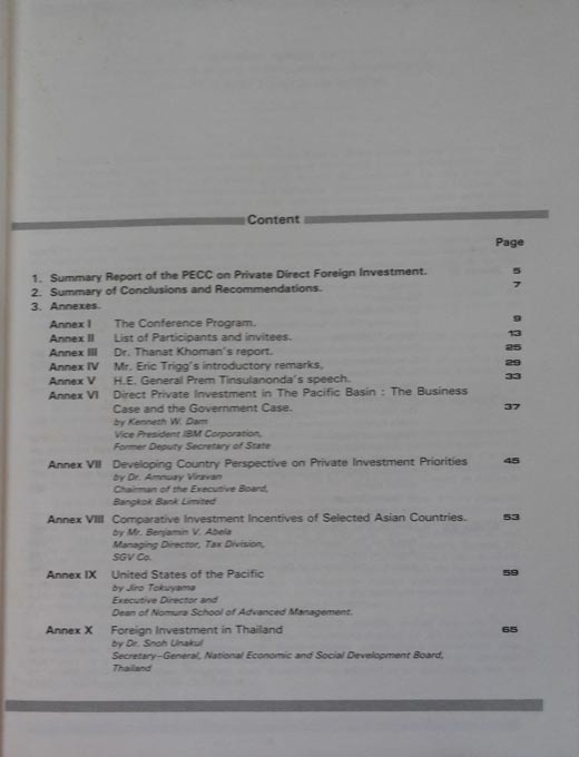 A Report on Private Direct Foreign Investment, Bangkok, 3-5 April 1986