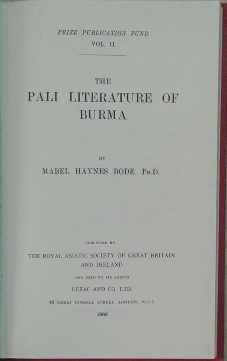 Pali Literature of Burma, The