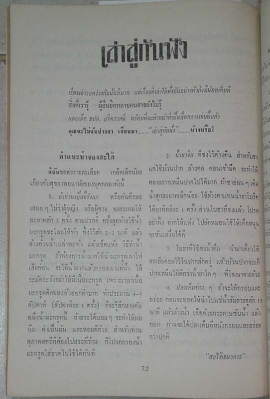 20 articles: 1) Article from Editor, 2-3) Surawong, 4) M.L. Vivattanachai Chaiyon, 5) Had Yai Survey, 6) Department of Correction, 7)Consecrated precinet of a Temple, 8) Flood in 1942,