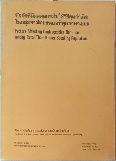 Patjai Ti Mee Pon tor Kan Mai Chai vitee Koom Kamnerd Nai Klum Chao Thai Chonnabot Thi Poot Phasa Khamen - Factors Affecting Contraceptive Non-use among Rural Thai-Khmer Speaking Population