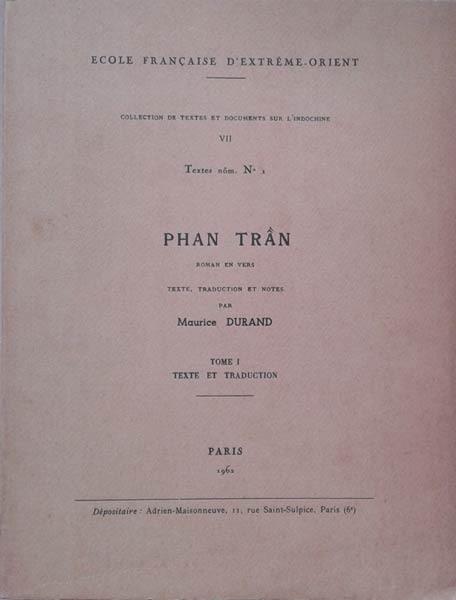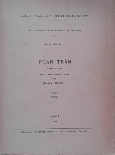 Phan Tran. Roman En Vers. Texte, Traduction Et Notes. 2 Vols