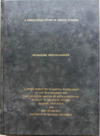 Phonological Study of Yangon Burmese: A Thesis Submitted in Partial Fulfillment of the Requirements for the Degree of Master of Arts (Liguistics) Faculty of Graduate Studies Mahidol University