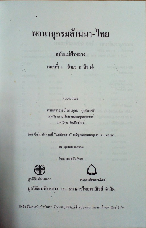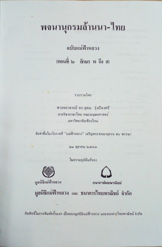 Photjananukrom Lanna-Thai Chabub Mae FahLuang: Dictionary of Lanna-Thai (2 Vols.)