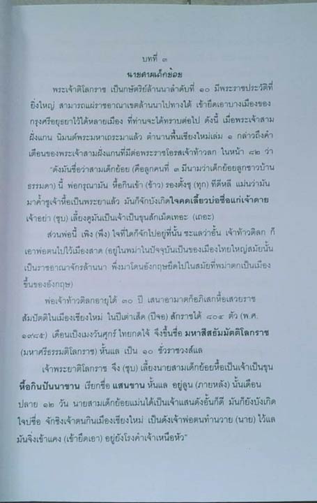 Phra Chao Tilok haeng Lanna Tam Song Kram kab Phra Borom Trai Lokanat Ayutthaya: The History Phra Chao Tilokarat, 10th King of Mangrai Dynasty