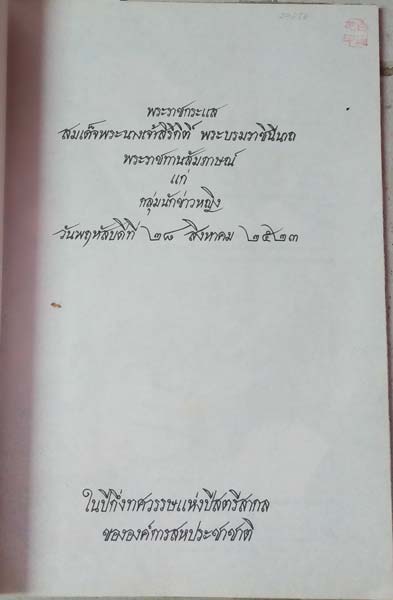 Phra Ratcha krasae Somdet Phra Nang chao Sirikit Phra Borom Rachineenart: The Interview of Queen Sirikit to The Womens Journalist Group, August 1980