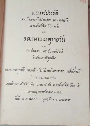 Phra Ratchaprawat Somdet Phra Srisawarin Thira Borom Ratchathevi Phra panwassa Iyikachao lae Chodmai Het Rai Wan kong Somdet Phra Borom Ratchapitula Thipbordi Chaofa Maha Wachirunhis