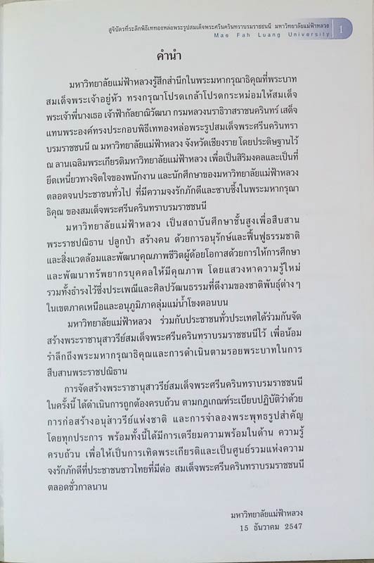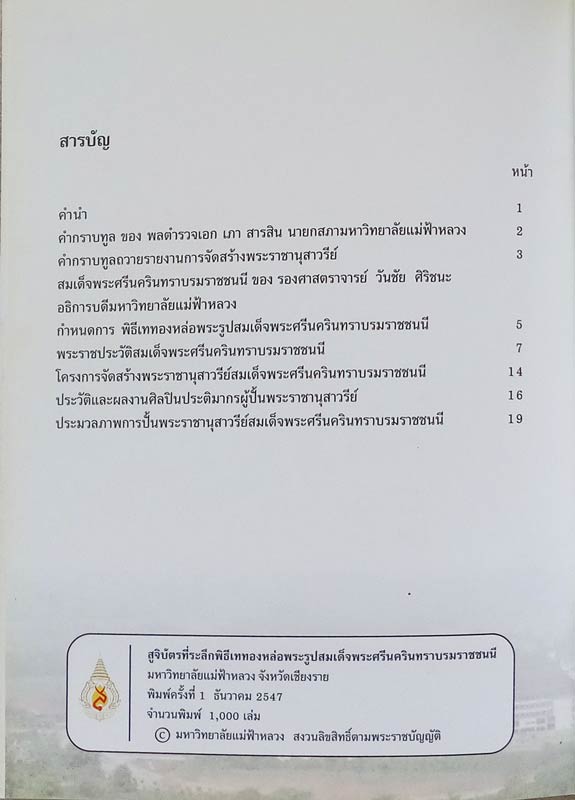 Piti Tae Thong Phra Roob Somdej Phrasri nakarintara Borom Ratchonnanee: The Ceremony casting Statue of Somdej Phrasri Nakarintara Borom Ratchonnanee at Mae Fah Luang University