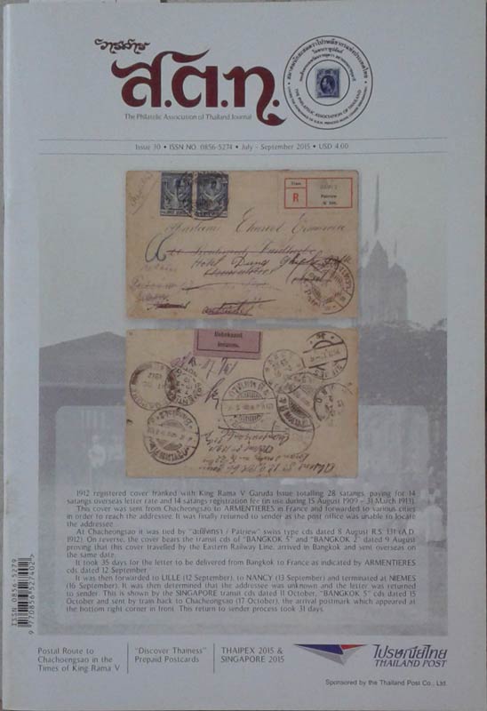 Articles of The Philatelic Association of Thailand Journal issue 30/2016 (July-September 2015) and 5 other authors, and other tiles