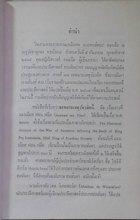 Funeral book Translation of the historical Account of the War of Sucession following the death of King Pra Interajasia, 22nd King of Ayuthain Dynasty, Written by Jeremais van Vliet