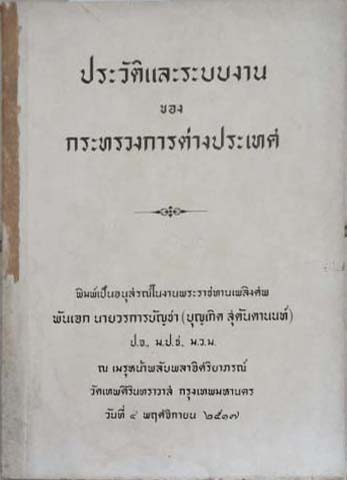 Prawat Lae Rabob Ngan Khong kra-suang Karn Tang Prathet: The Ministry of Foreign Affairs History and Its Organization