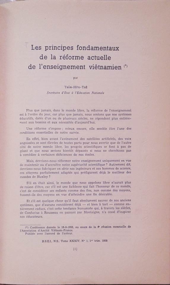 Priccipes Fondamentaux de la Reforme Actuelle de L'enseignement Vietnamien, Mises au Point de L'etude sur la Musique Sino-Vienamienne et les Chants Populaires de Vite-Nam, Remise des pieces de fouilles d'Oc-Eo Au Musee, Les