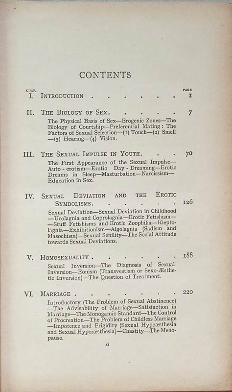 The Blology of Sex-The Sexual Impulse in Youth- Sexual Devation-The Erotic Symbolisms-Homosexuality- Marriage-The Art of Love