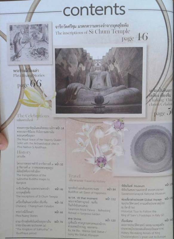 Another 12 Articles: Postcard from Suan Sunandha, Phra Ruang Stories, The Inscription of Si Chum Temple, The Transportation of the sukhothai Buddha Images to Bangkok, Chaliang Celadon, At that Moment: Sararom Royal Palace, Refreshing retreat......