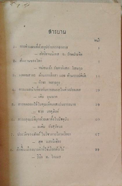 The book contains 11 Articles and other Articles Construction Geology, Geography, Medicine, Herbs, Tin Mining Industry, words in Anatomy, Flora Fauna, Important Points on Constructing building in Bangkok