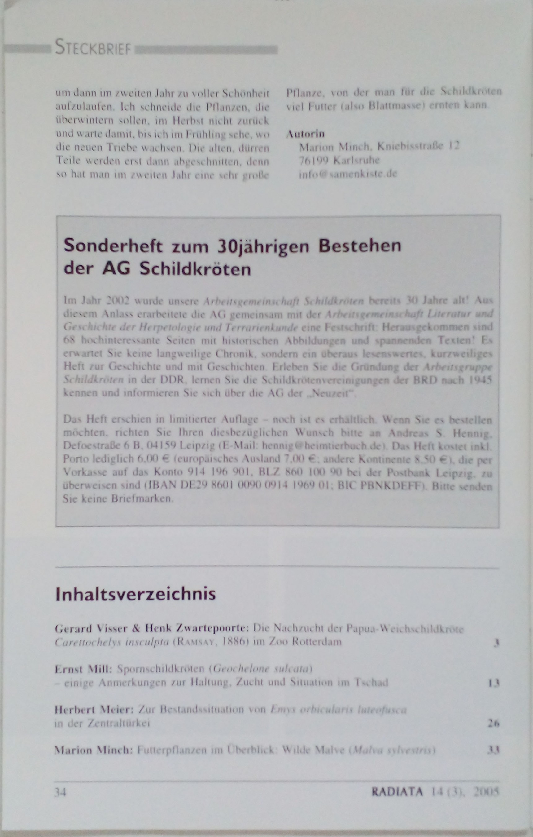 Radiata: Journal der DGHT-AG Schildkroten, 14 Jahrgang - Heft 3 - August 2005