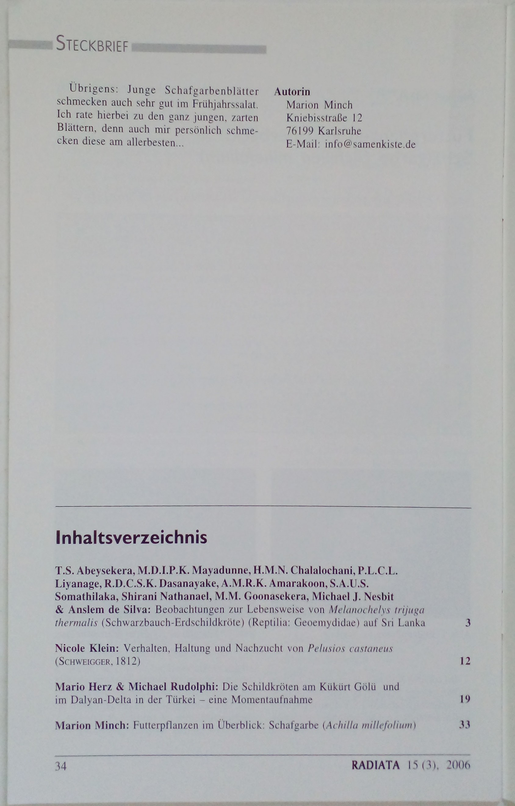 Radiata: Journal der DGHT-AG Schildkroten, 15 jahrgang - Heft 3 - August 2006