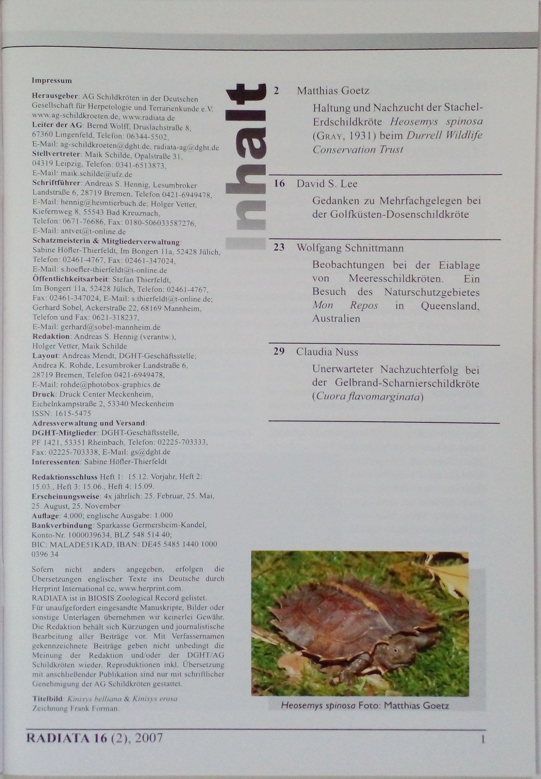 Radiata: Journal der DGHT-AG Schildkroten, 16 Jahrgang - Heft 2 - Mai 2007