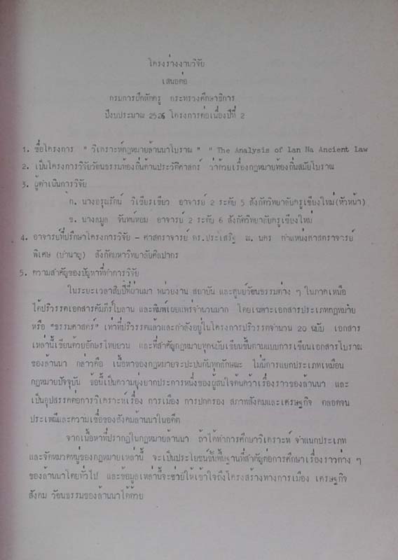 Rai-Ngan Karn vijai Vikroh Kotmai Lanna Boran Lem 1 : The Analysis of Lanna Ancient Law
