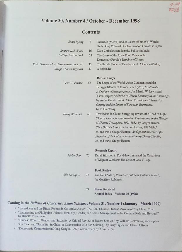 4 Articles of Bulletin of Concerned Asian Scholars. Vol. 30/4, 1998