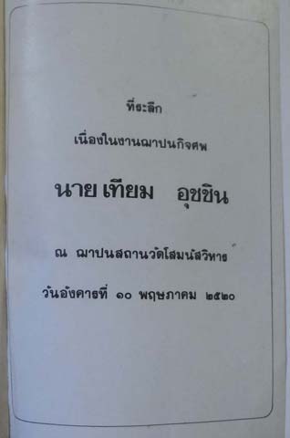 a Funeral book of Tiam Uchin A owner of Vitayasrom Pharmacy