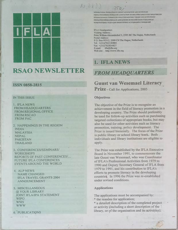 Rsao Newsletter: Ifla News, Happenings in the Region, Conferences/Seminars/Workshops, Alp News, Miscellaneous, Publications