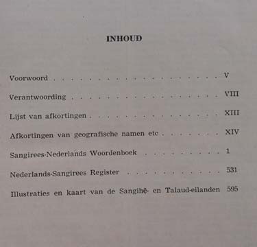 Sangiree-Nederlands Woordenboek met Nederlands-Sangirees Register