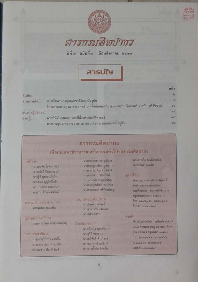 Articles: 1. A Present Age to Development of National Museum 2. Traning Volunteer project a Tourism's help at Sukhothai-Srisachanalai National park, 3. Vimanmek Palce, 4. A First Statue of Somdej Phra Chomklao Chao Yu Hua
