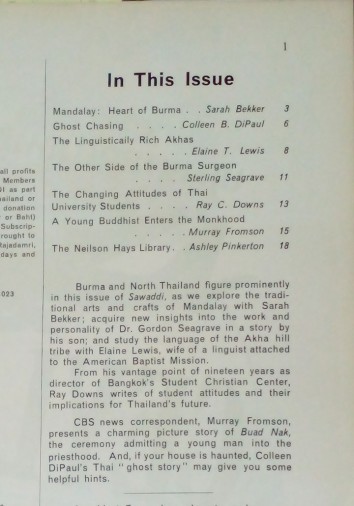 Mandalay: Heart of Burma, Ghost Chasing, The Linguistically Rich Akhas, The Changing Attitudes of Thai University Students