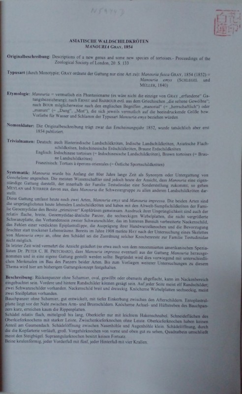 Braune Waldschildkrote (Manouria emys) Hinterindische Waldschildkrote (Manouria impressa)