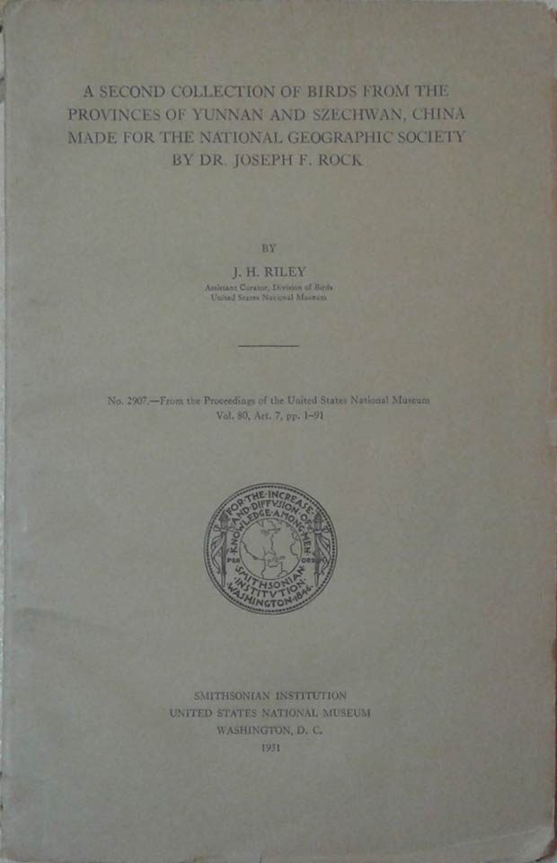 Second Collection of Birds from the Provinces of Yunnan and Szechwan, China, Made for the National Geographic Society By Dr. Joseph F. Rock, A