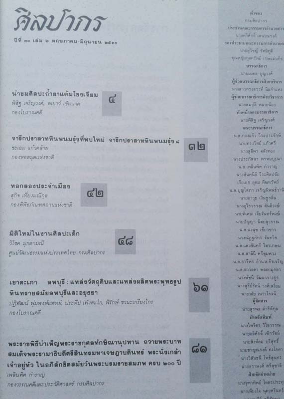 6 Articles: 1.Guide to Pha-Taem Cave Kong-Jiam, 2. Inscription of Panomrung, 3. Tower of Dram, 4. Childrens Arts, 5. Khao Ta-pao at Lopburi Province, 6. The State Ceremony of 200th Year King Rama 3,....