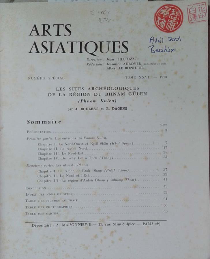 Siutes Archeologiques de la Region du Bhnam Gulen (Phnom Kulen), les