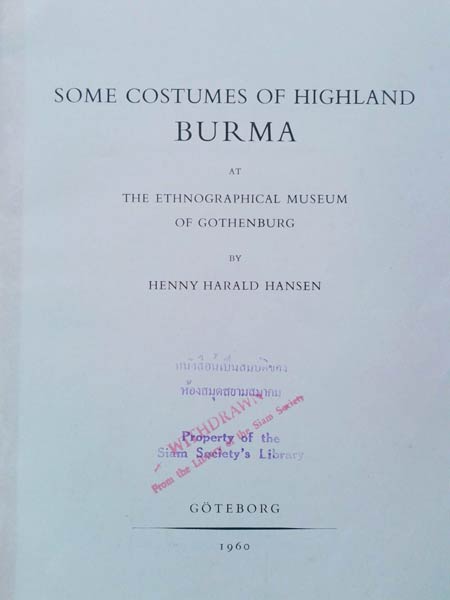 Some Costumes of Highland Burma At the Ethnographical Museum of Gothenburg