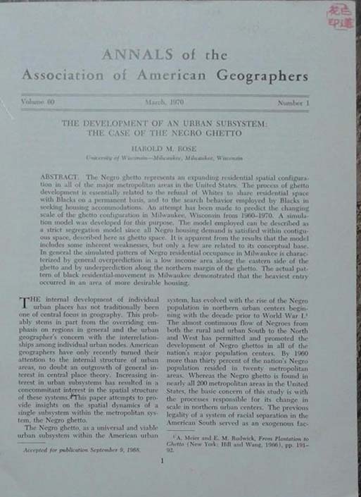 Article in Annals of the Association of American Geographers Vol. 60.1
