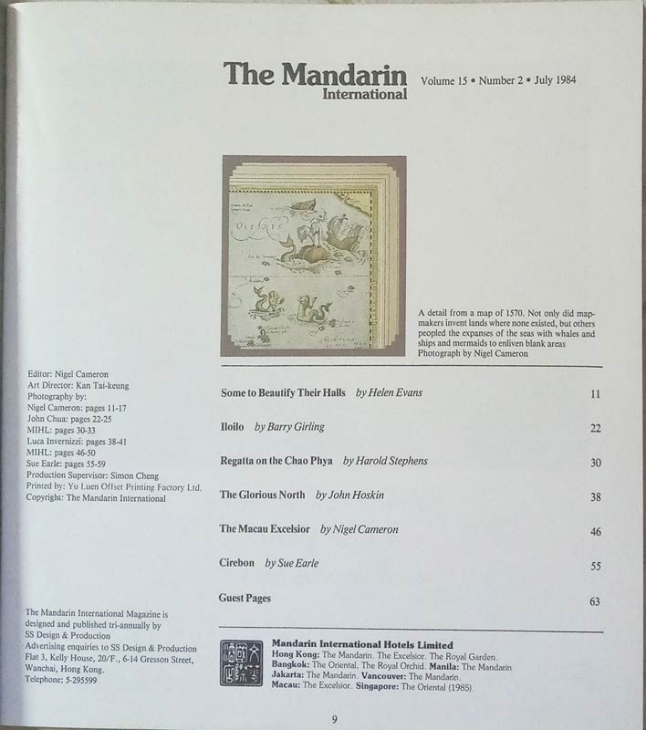 Some to Beautify Their Halls (on old maps) other Articles on Thaialnd in Mandarin International June 1984