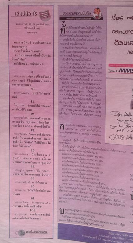 Another 11 Article about Political and The Writing of the Princess Sirinthron in "The Dream" and Memoires of Geisha and the Crash Liberty of the Mass Media with a faith