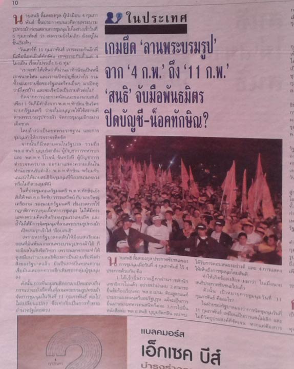 Sonthi Limthongkul with his 4 victory after Congregate 4th February at the Statue of a King