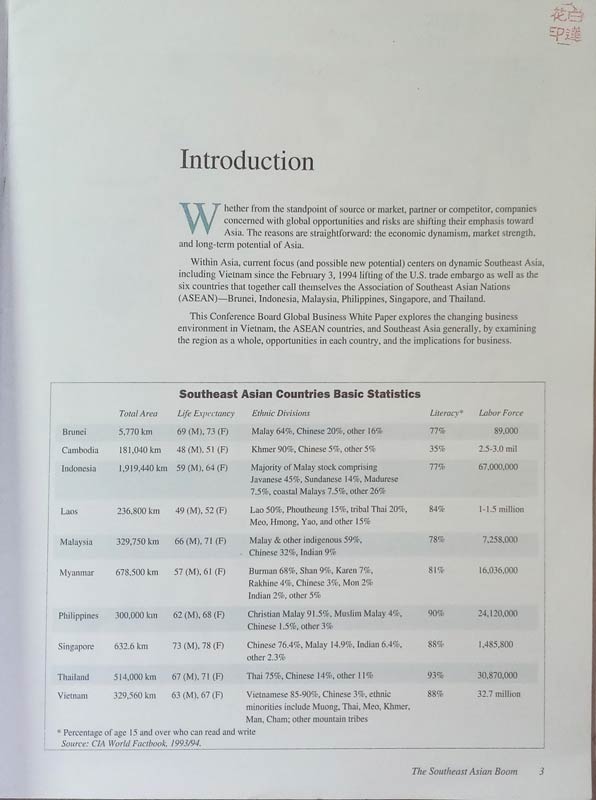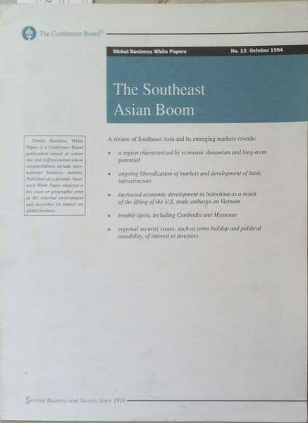 Southeast Asian Boom: Global Business White Papers No.13. Oct. 1994 A Reviw of Southeast Asia & Its Emerging Markets Reveals: A Region Characterized by Economic Dynamism & Long-Term