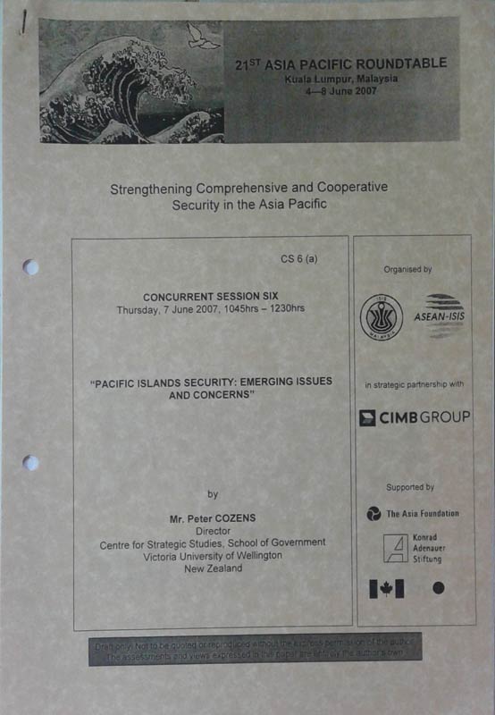 Pacific Islands Security: Emerging Issues and Concerns 6 Articles Strengthening Comprehensive and Cooperative Security in the asia Pacific, 21st Asia Pacific Roundtable 4-8 June 2007