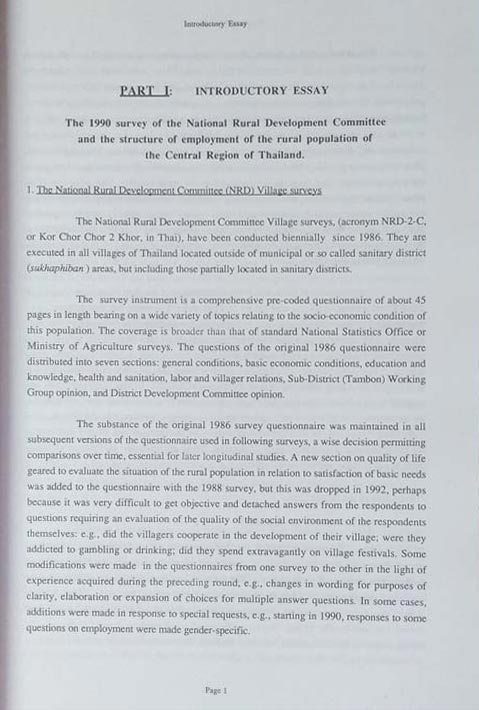 Structure of Employment of the Rural Population of the Centrak Reguin of Thailand, The