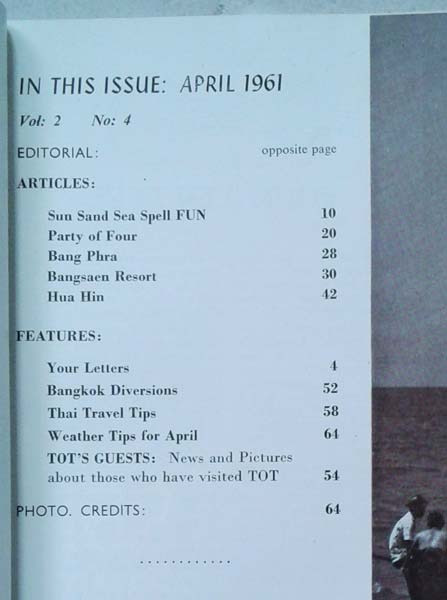 5 Articles of Holiday Time in Thailand Vol. 2 No. 4 (April 1961)