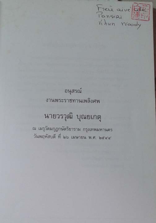 A Funeral book of Worawud Bunyaket, The Board of Directors of Thai Airways