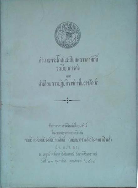 Royal cremation ceremonies and procedures and protocol in the palace, Funeral book of Taweewongawansak