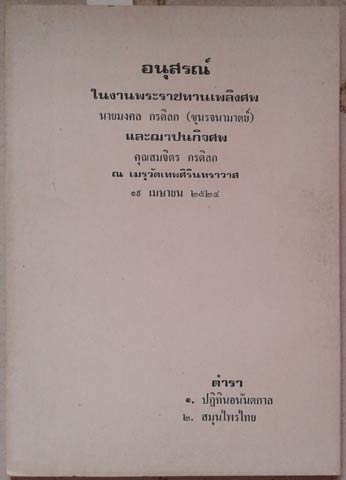2 Articles : The Thai Calendar by Payap Panomwan and Thai Herbal Plants by Dr. Komol Sivabaworn (A Funeral book of Mongkol and Somjit Korndilok) (2 pages blank)